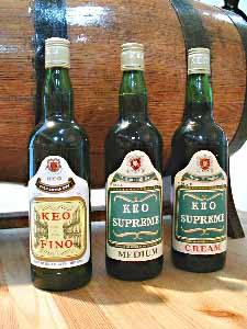 Sherry Drei Keo Sherry, die durch ihren sehr milden, weichen Geschmack bestechen. Das Aroma der Eichenfässer und die sorgfältige Herstellung geben ihnen ihre besondere Note. Erhältlich als Fino, Medium und Cream. |